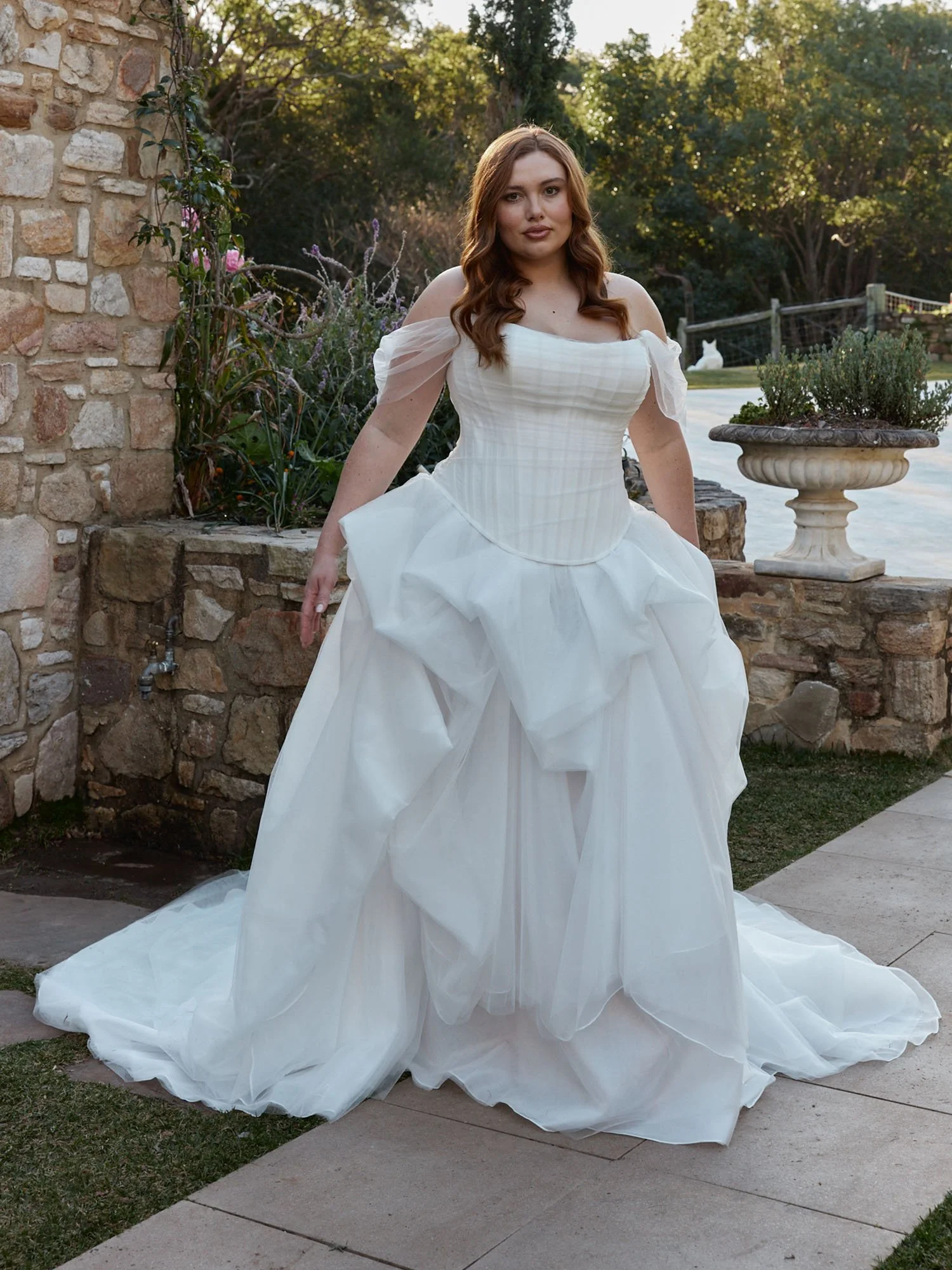 Our sample is available to try on in store in an ivory size 12.