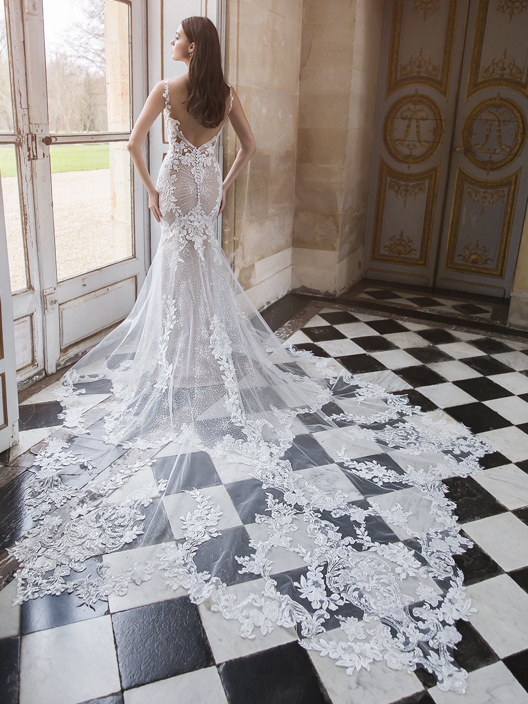 If you want a bold and beautiful wedding dress, Ravenna is the one for you! This daring mermaid gown sparkles with every movement, and will be sure to hug you in all the right places. We also can’t forget about her beloved ÉLYSÉE signature double sculpted train that provides the perfect dose of drama. Ravenna also comes in black for an even more extravagant, unforgettable look!
